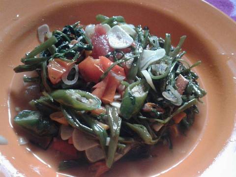 - Masukkan kangkung dan dan diberi sedikit air, supaya bumbu meresap, dan masukkan tomat kedalamnya